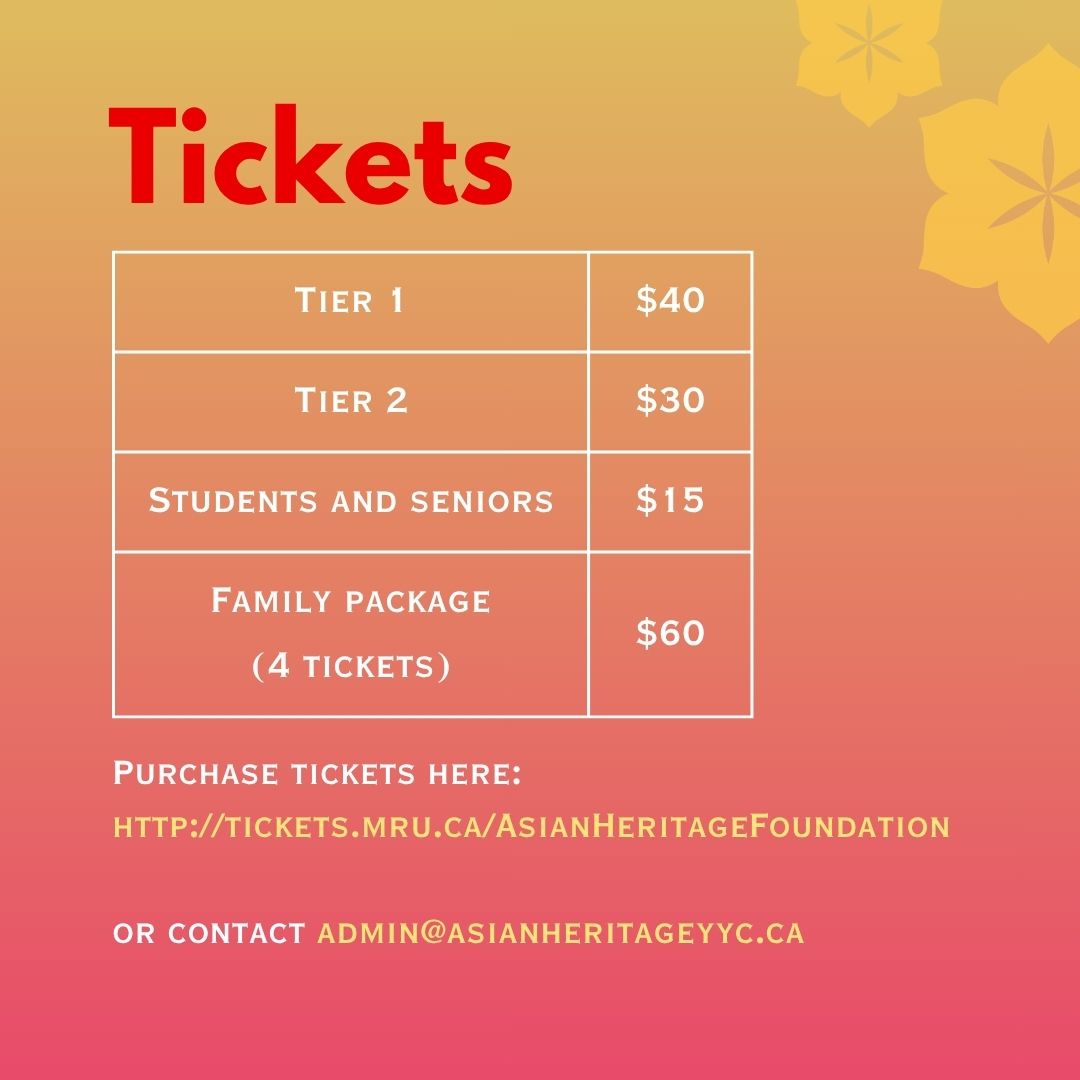 Bella Concert Hall, Mount Royal University 18 Mount Royal Circle SW, Calgary, Alberta, CanadaExperience the dynamic treasures of the Pan-Asian diaspora with international award-winning performers - Calgary’s professional performing artists! Purchase tickets here: http://tickets.mru.ca/AsianHeritageFoundation Eko Nurcahyo Jihyun Back Raghav Mathur Yadong Guan GCB Band […]